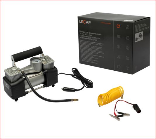 Компрессор двухпоршневой LECAR 10атм. 65л/мин. с удлиняемым шлангом (металлический корпус)