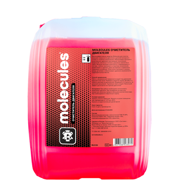 Высокоэффективное средство Molecules для очистки внешней поверхности двигателя и деталей моторного отсека от сложных загрязнений. Обеспечивает быстрое и качественное удаление пригоревших технических жидкостей, масляных потеков, дорожных реагентов и грязи. Не требует использования щетки.Мощные моющие компоненты, содержащиеся в составе, глубоко проникают в структуру загрязнений, размачивают и удаляют даже застарелые и термически спекшиеся отложения. Обильная пена проникает в зазоры между деталями и обеспечивает удаление загрязнений в труднодоступных местах. Особенности состава позволяют удерживаться пене на вертикальных поверхностях, улучшая взаимодействие активных компонентов с грязью для более качественной очистки.Состав не содержит растворителей, безопасен для пластиковых и резиновых элементов, а также для лакокрасочного покрытия. Не вызывает потемнение алюминиевых деталей и коррозию. Может использоваться даже при неостывшем двигателе.