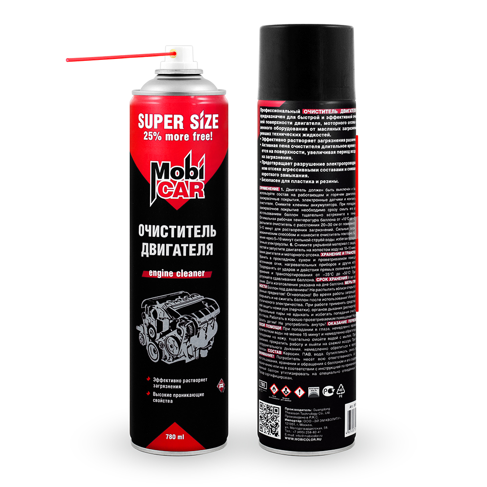 Профессиональный очиститель двигателя MobiCAR® предназначен для быстрой и эффективной очистки внешней поверхности двигателя, моторного отсека и промышленного оборудования от масляных загрязнений и пригоревших технических жидкостей.Эффективно растворяет загрязнения различных видов.