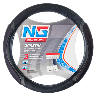 Оплетка на руль NEW GALAXY 38см черная с захватом руля PU1102001 708-393