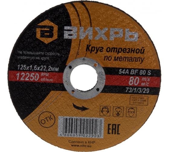 Круг отрезной по металлу 125 х1,6 х22 Вихрь Круг отрезной по металлу 125 х1,6 х22 Вихрь