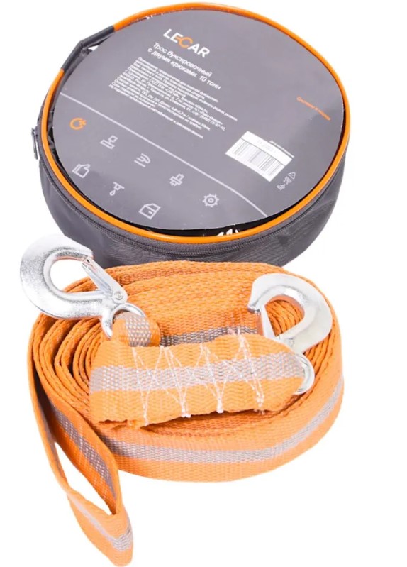 Трос буксировочный 10т 5м LECAR 2 крюка, ширина ленты 50мм,сумка Трос буксировочный 10т 5м LECAR 2 крюка, ширина ленты 50мм,сумка