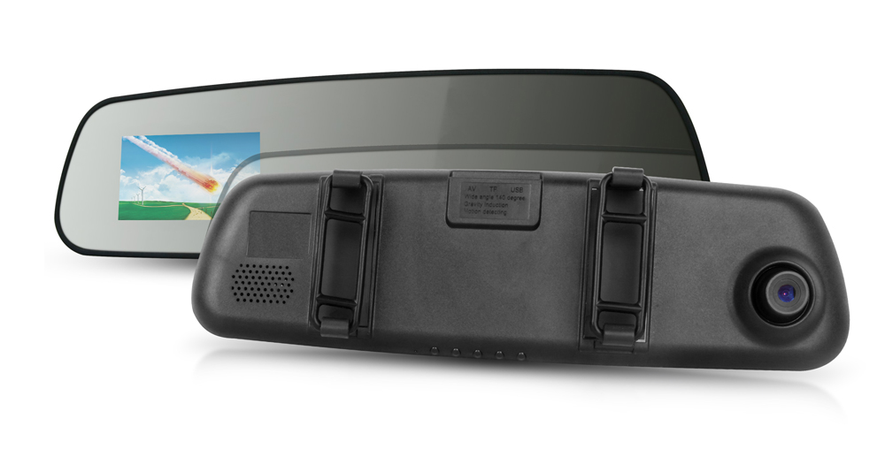 Конструкция видеорегистратора: зеркало заднего вида, с экраном