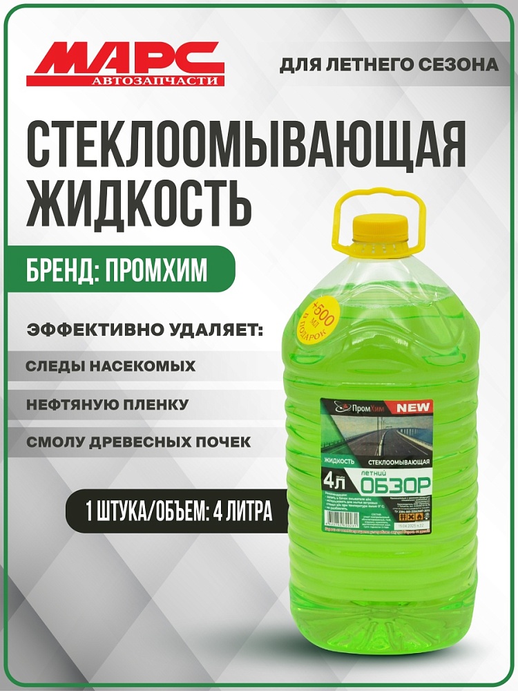 Жидкость стеклоомывающая летняя ПромХим Обзор-NEW  4л. Жидкость стеклоомывающая летняя ПромХим Обзор-NEW 4л.